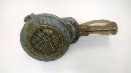手に持って使うサイレンです。ハンドルを回すと「ウー、ウー」と大きな音がなります。