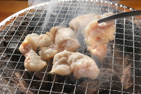 ピリ辛でにんにくの効いた○八ホルモン特製のタレは、鮮度にこだわったホルモンをより引き立たせる抜群のうまさ!