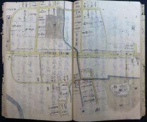 豊臣秀吉による文禄検地の後に都城領主である北郷氏が祁答院(現在の鹿児島県さつま町)へ移動するのに伴って唐人町も同地へ移転しました。そして、島津家の内乱である庄内の乱後、慶長5年(1600)に北郷氏が都城に復帰すると、下長飯村と宮丸村の境へ移動し、元和の一国一城令(1615)の後に領主館を建設するのに伴って、唐人町の場所は領主館敷地内へと移動し、近世唐人町の場所が確定したのです。このように、領主の居所が移動すると共に唐人町も移動していることが確認できます。以後、唐人町は本町と並んで都城の町場の中心となりました。