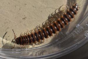 ヤンバルトサカヤスデは台湾原産の外来生物で、人体や農作物に害は与えないものの大量発生して不快さを催させる不快害虫です。成虫は体長3cm前後、体色は褐色で、淡褐色と濃褐色の縞模様があります。また、在来種のヤスデよりも大型です。